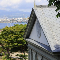 写真歴史館の屋根越しに