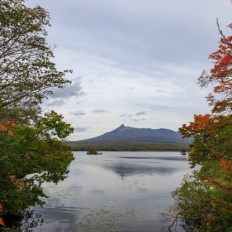 大沼公園の景色が赤くなってきた