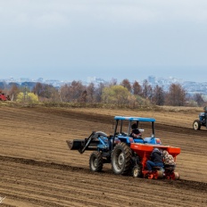 丘の上では 農作業