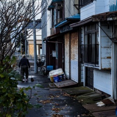 雨降る中を歩く