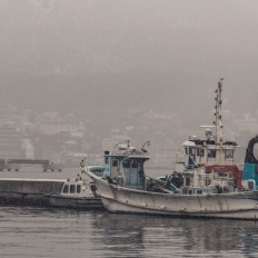 雪の海岸町船溜まり