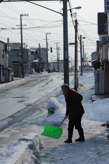 除雪車が置いていった雪の始末がたいへんでした。