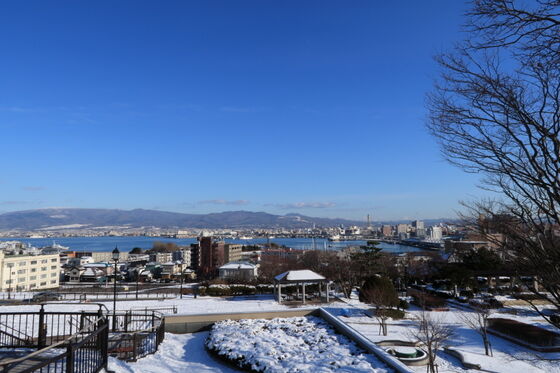 今回は元町公園と八幡坂から望む函館湾の風景をご覧ください 11月26日に撮影したものです この日は晴天でしたが 周囲には雪が残っていました 冬は特に空気が澄んでいるのできれいに見えますね 寒いなんて言ってられません 雪が降ろうとあられが降ろうと時間がある日はカメラを持って出かけますよ そういう日は1日に約10000歩歩いています