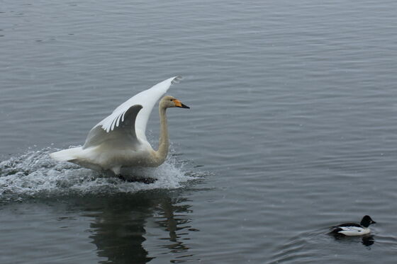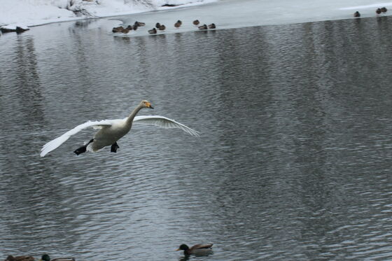 2018/02/20 2月11日 大沼公園 10 こんにちは今朝の天気予報では真冬日で予想最高気温が-2℃寒いですが一時に比べると暖かくなりました今回は先週の日曜日の写真です大沼公園の白鳥台セバットで6羽家族の白鳥を撮ってさて帰りましょうと歩き始めるともう1羽がやってくるのが見えました慌ててカメラを向けました鉄橋の向こう側は大沼(こちら側は小沼)大沼方向から飛んできました着水後は先に来ていた6羽といっしょに泳いでいました【2018年2月11日撮影】ライブカメラ 今の函館です→ 函館山ライブカメラ←函館観光情報はここ←北海道旅行関連情報はここ < 前の記事次の記事 > コメント コメント一覧 (2) 1. イチイ 2018/02/20 13:39 こんにちは 白鳥さんの北帰行はいつ頃かしら~<img src="https://s.yimg.jp/images/socialproducts/blog/img2/emoji/056.png"> 見られるのもあとわずがかな<img src="https://s.yimg.jp/images/socialproducts/blog/img2/emoji/034.png"> 0 Masa がしました 2. masa 2018/02/20 19:26 > イチイさん 3月末なのでしょうか その頃に行ったことがないので 気がつけばいなかった って感じです 0 Masa がしました コメントフォーム 名前 コメント 記事の評価 リセット リセット 顔 星 情報を記憶 コメントを投稿する