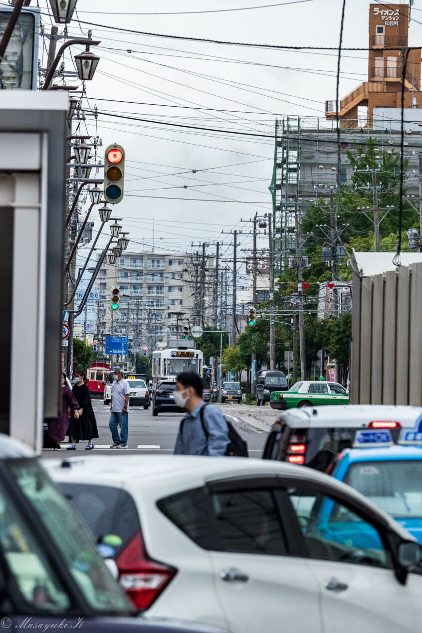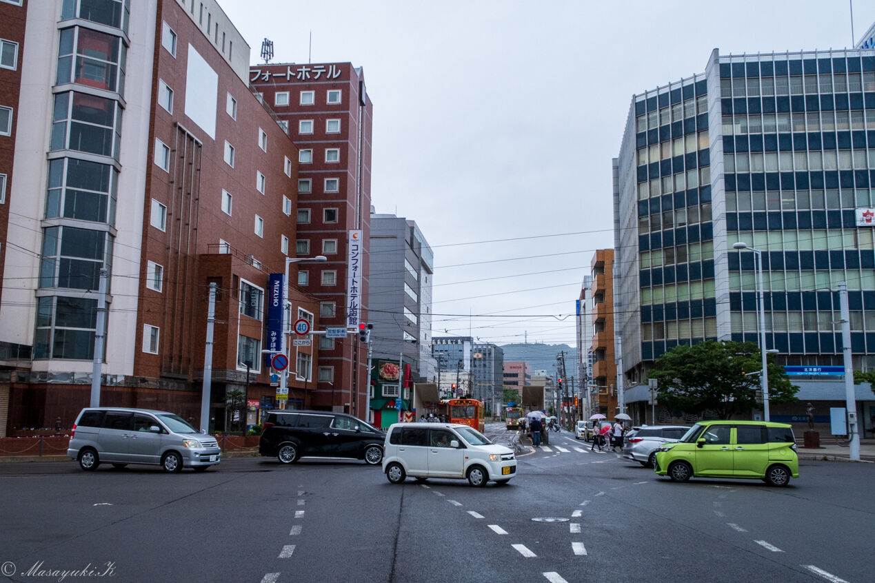 函館駅前交差点を渡り街の中へ