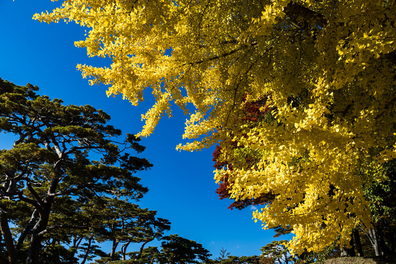 青空に銀杏の黄色
