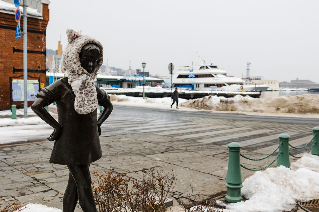 金森倉庫横の『おしゃま』像