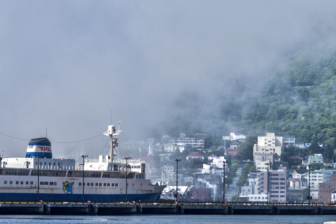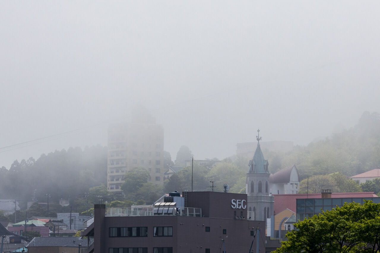 津軽海峡から海霧が押し寄せてきました
