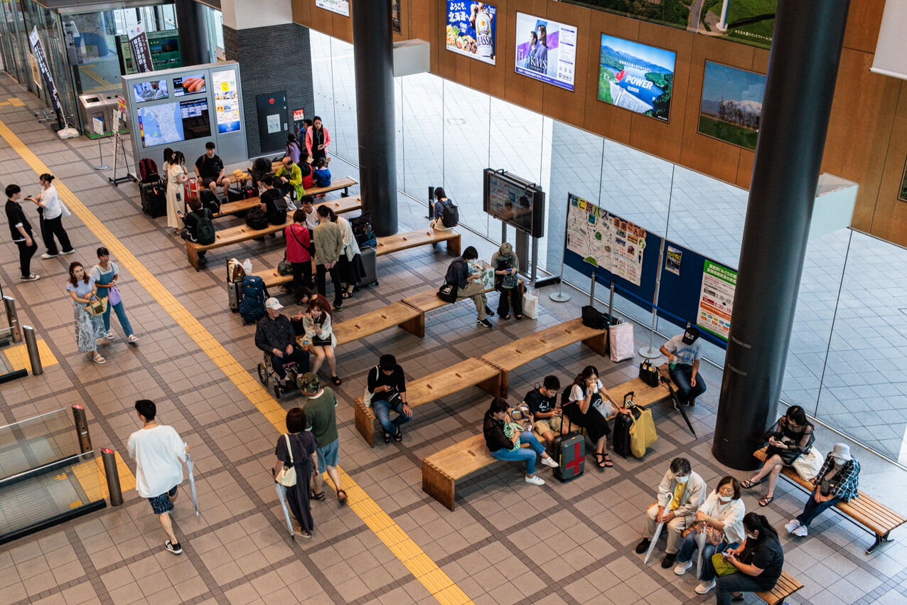 お盆休みで賑わう函館駅前