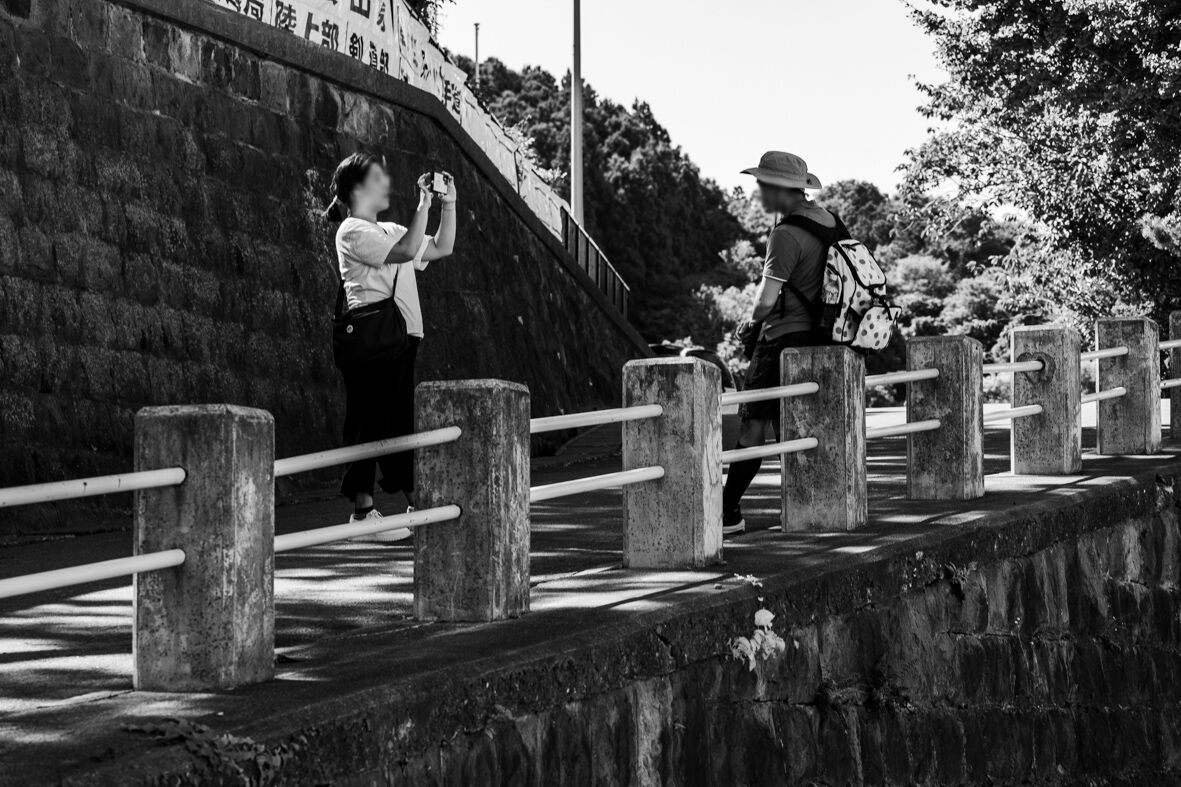 八幡坂で記念撮影する人