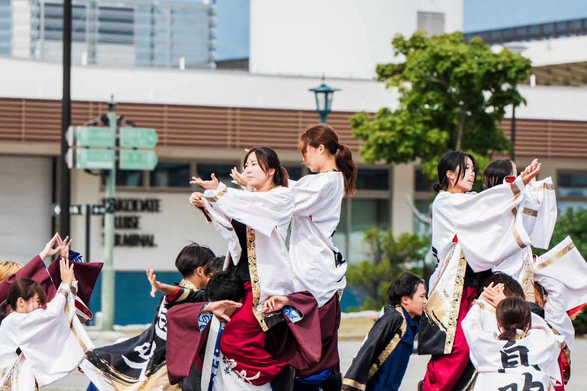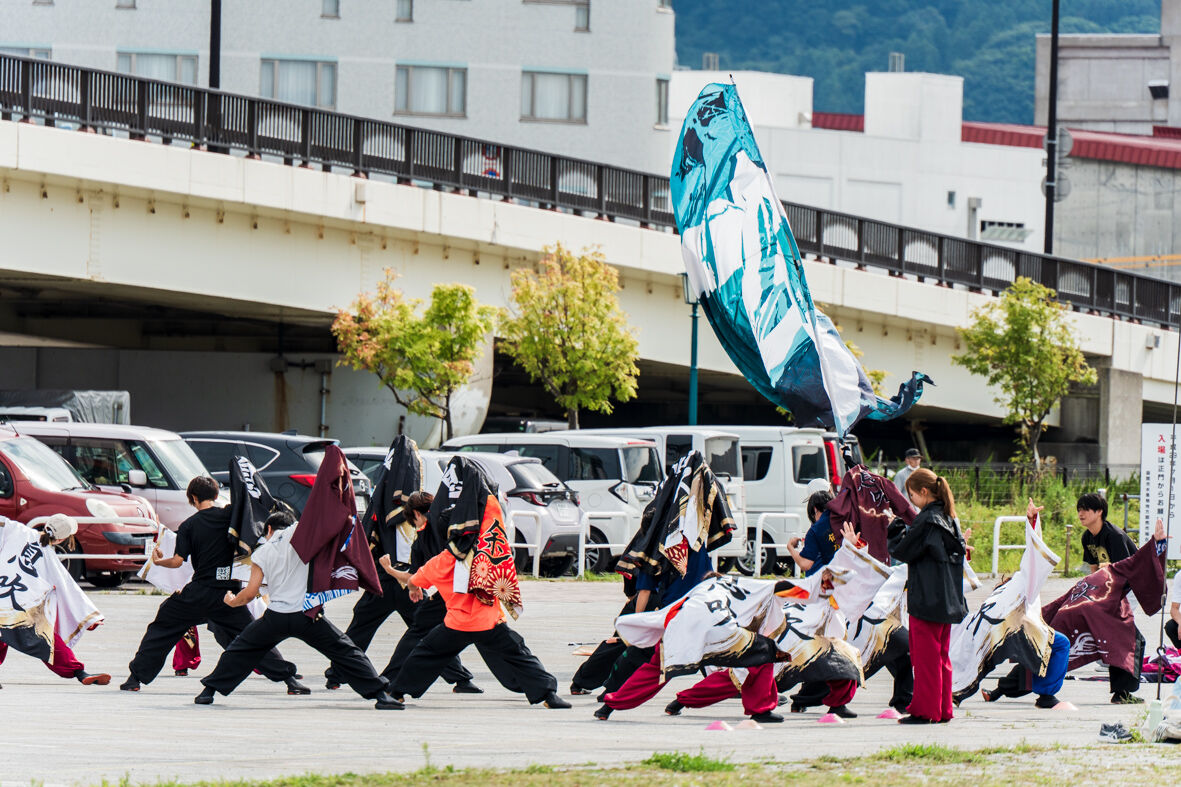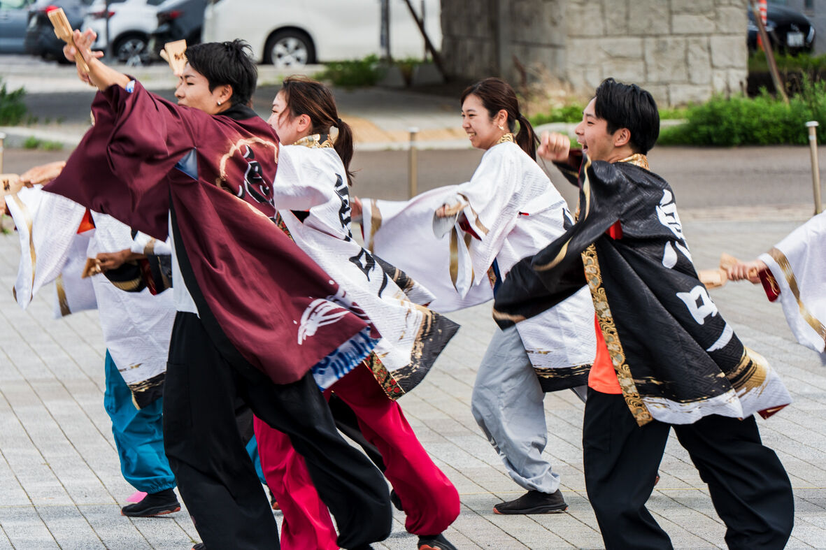 広場では 若者がよさこいソーランの練習