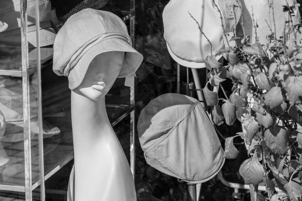 老舗帽子屋さんの前