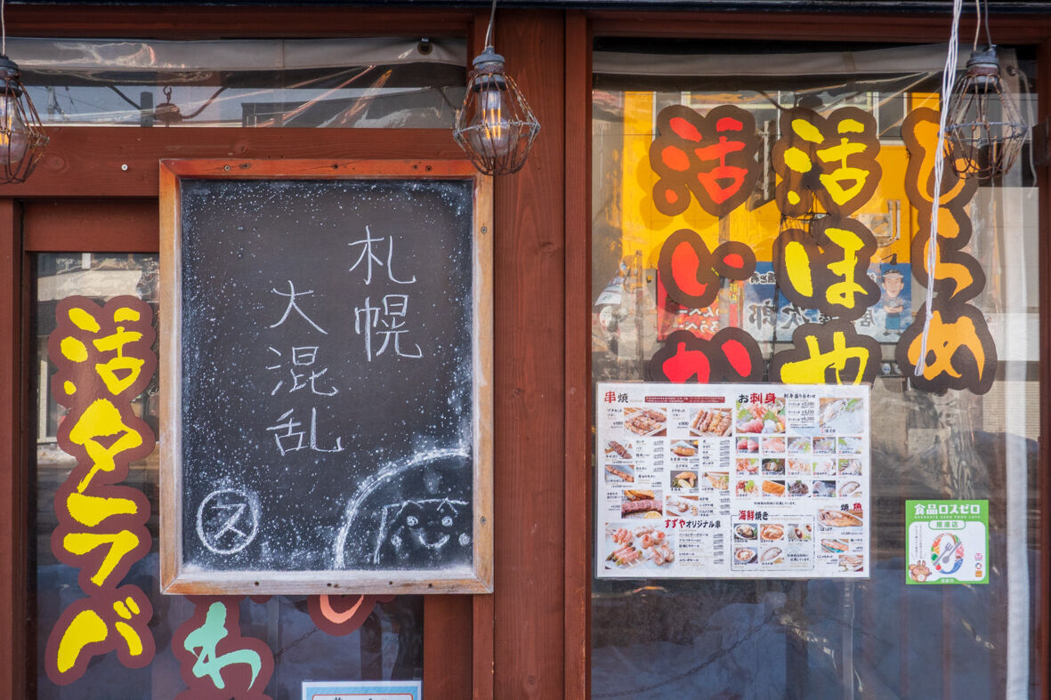 今日の看板は『札幌 大混乱』だった