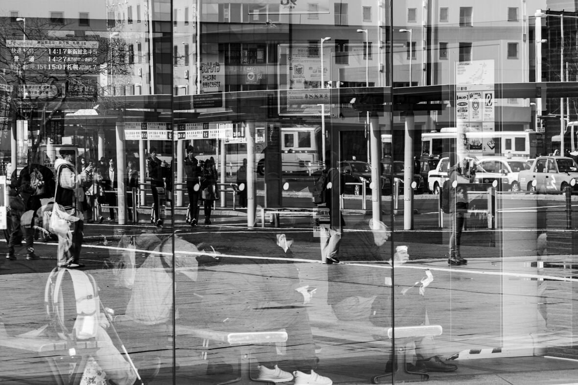 駅のガラスの写り込み